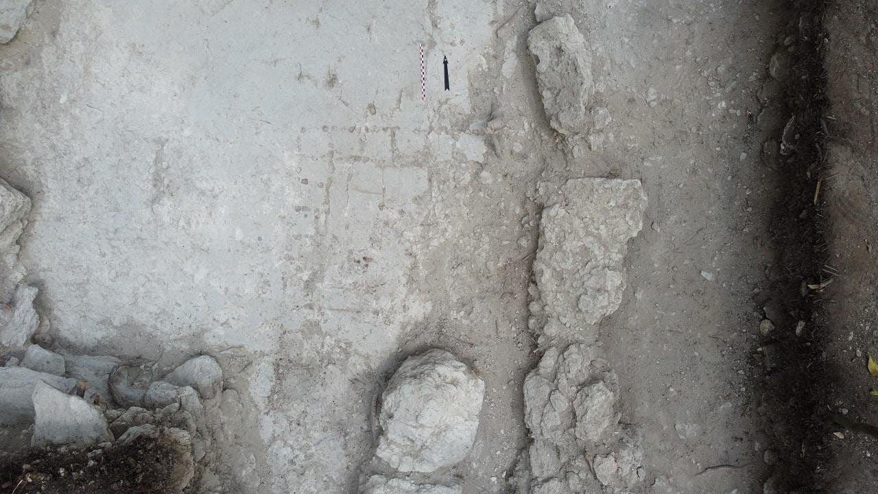 Naachtun was a powerful Classic period city (circa CE 250-900) situated between Tikal and Calakmul. Discovered embedded in the floor of Structure 6L-19 within Group 6L13, a grand residential compound, the board’s surrounding architecture suggests the building belonged to a wealthy or influential household, possibly a local administrative center. Found beneath later construction and partly obscured by a wall, the board clearly predates the room’s final phase and was built intentionally into the flooring as part of the structure’s original design.