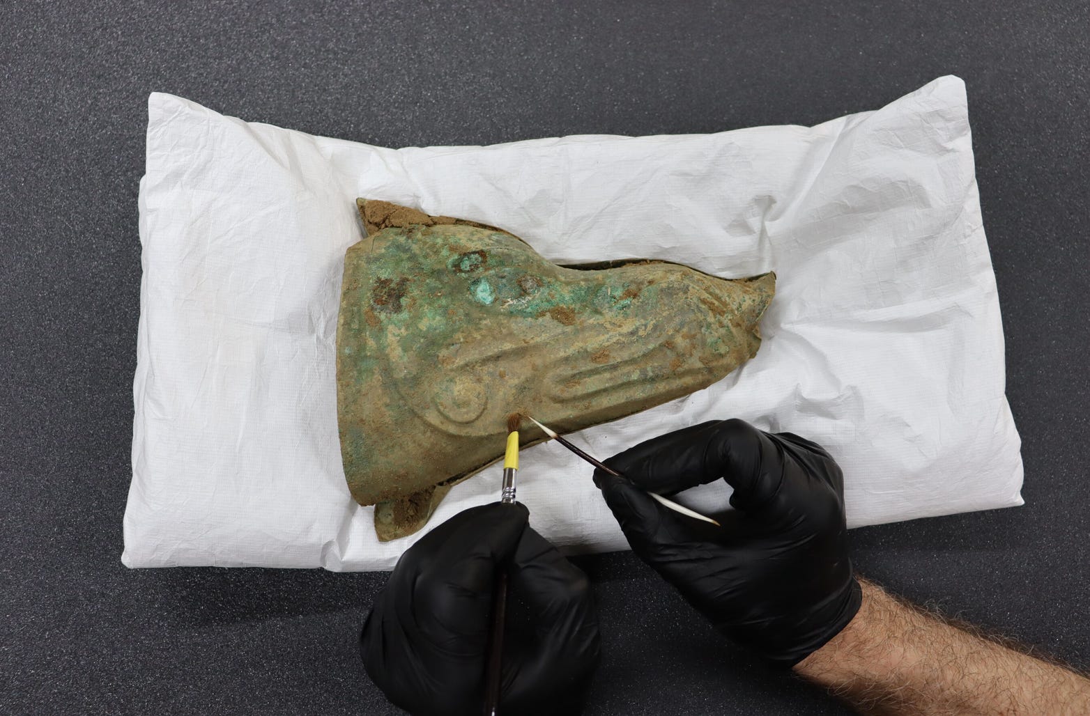 Greek historian Diodorus Siculus wrote in the first century BC that warrior tribes blew into these trumpets to produce a harsh sound suited to war. The newly discovered carnyx shows signs of repair, indicating long use. While partially dismantled before burial, the whole bell and head remain relatively complete, and it’s the only carnyx ever found with its ears still attached.