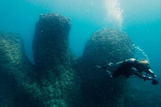 Forty feet beneath the Mediterranean Sea, divers found stone columns rising more than 20 feet from the seafloor.