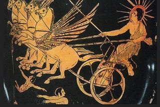 The image above shows Helios, the Greek sun god, riding his chariot across the sky.
